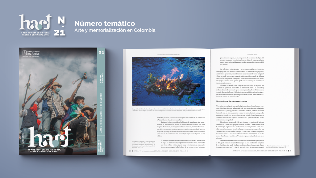 El número 21 dedicado al dossier “Arte y memorialización en Colombia”, incluye una nota introductoria de las editoras invitadas, un texto de la artista invitada Cindy Muñoz, nueve artículos, tres reseñas y tres textos que inauguran Reflexiones, una nueva sección compuesta por escritos breves que proponen miradas críticas y personales sobre cuestiones relacionadas con el tema del dossier.