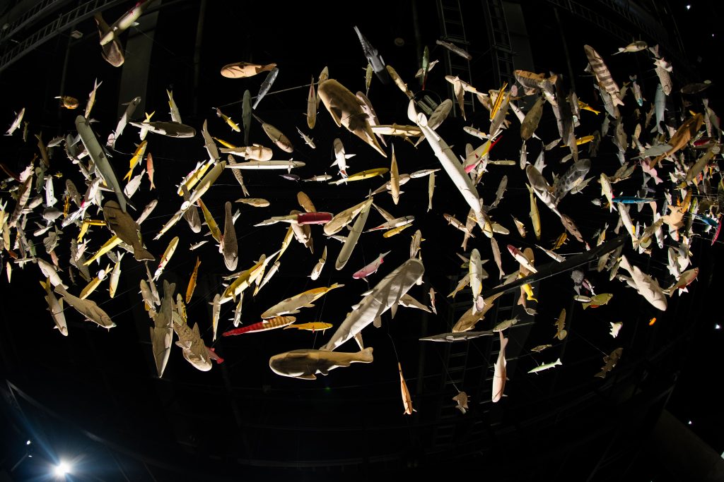 Imagen 1. Enrique Hernández Macuritof, detalle del montaje de Peces del Amazonas, Parque Explora. Cortesía de Parque Explora, Medellín.